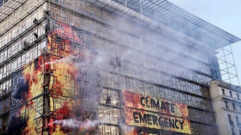 Early Thursday, 28 Greenpeace activists scaled the facade of the EU's Europa building - where the heads of state and government will meet later in the day to discuss climate measures.