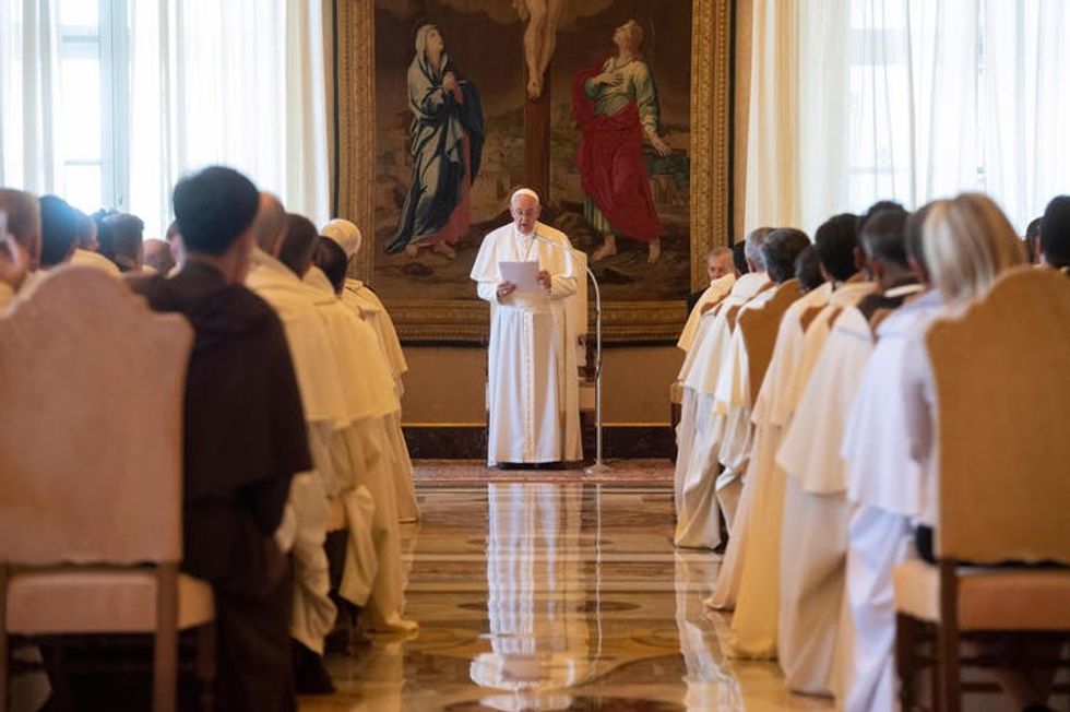 Pope Francis attends an audience with the participants in the General Chapter of the Order of Friars of the Blessed Virgin Mary of Mount Carmel (Carmelites), Vatican City, in September.