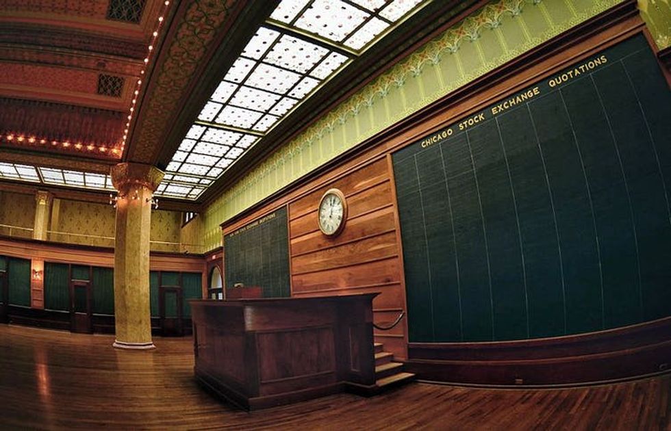 The preserved trading floor of the Chicago Stock Exchange.