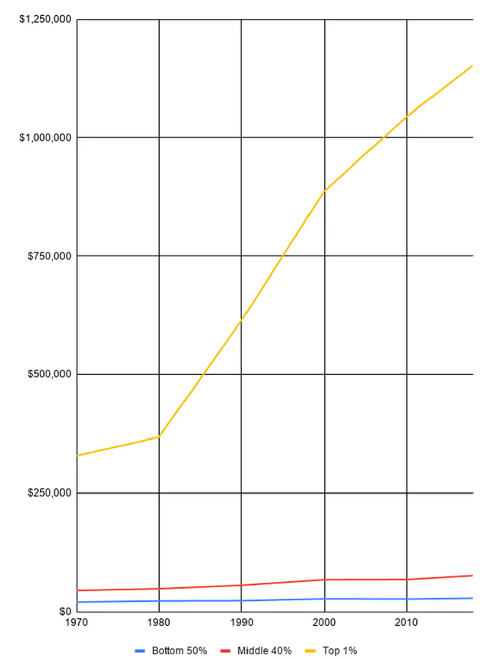 Meanwhile, working people are taking home just $8,000 more per year than they did in 1970.