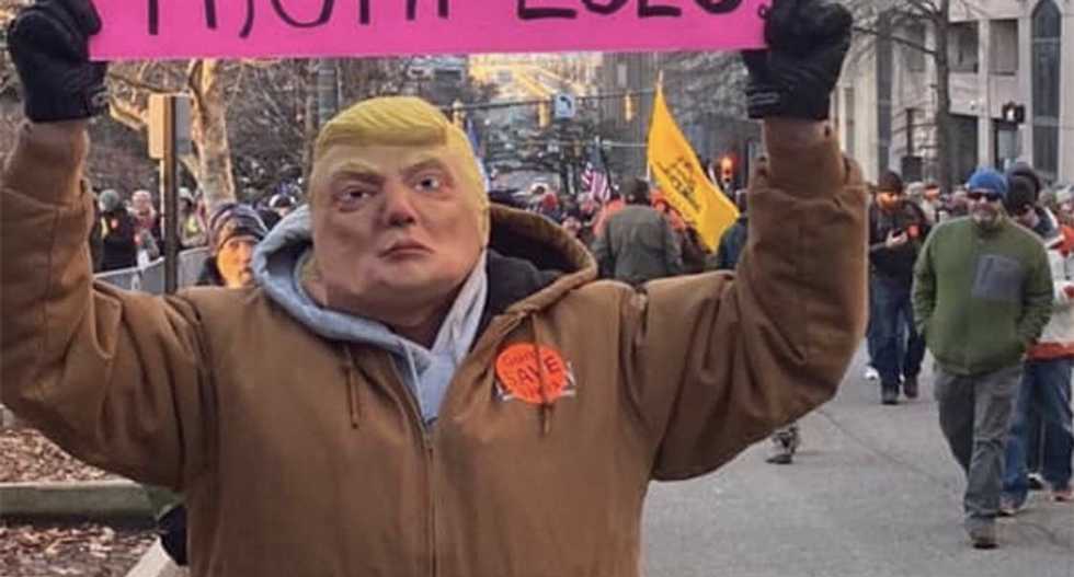 A masked right-wing gun protester appeared at the Virginia Capitol in Richmond Monday for the Dr. Martin Luther King, Jr. holiday. Unfortunately for him, however, an employee witnessed the sign the man was carrying.