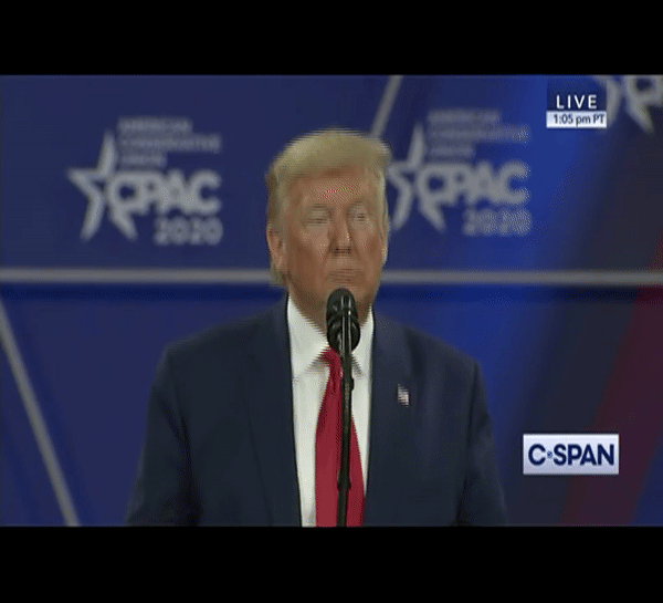 President Donald Trump ducked behind his lectern on Saturday while giving a political speech to the Conservative Political Action Conference (CPAC) in Maryland.