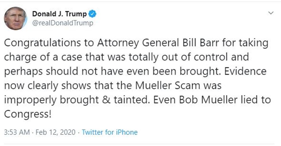 Trump showed he is interfering in a live federal criminal case. It is a trampling of any remaining bright-line meant to separate pursuit of politics and administration of law in this country. Trump is seeking to lighten federal sentencing for campaign ally Roger Stone. Attorney General William P. Barr, for Trump, moved to undercut what prosecutors seek as punishment.