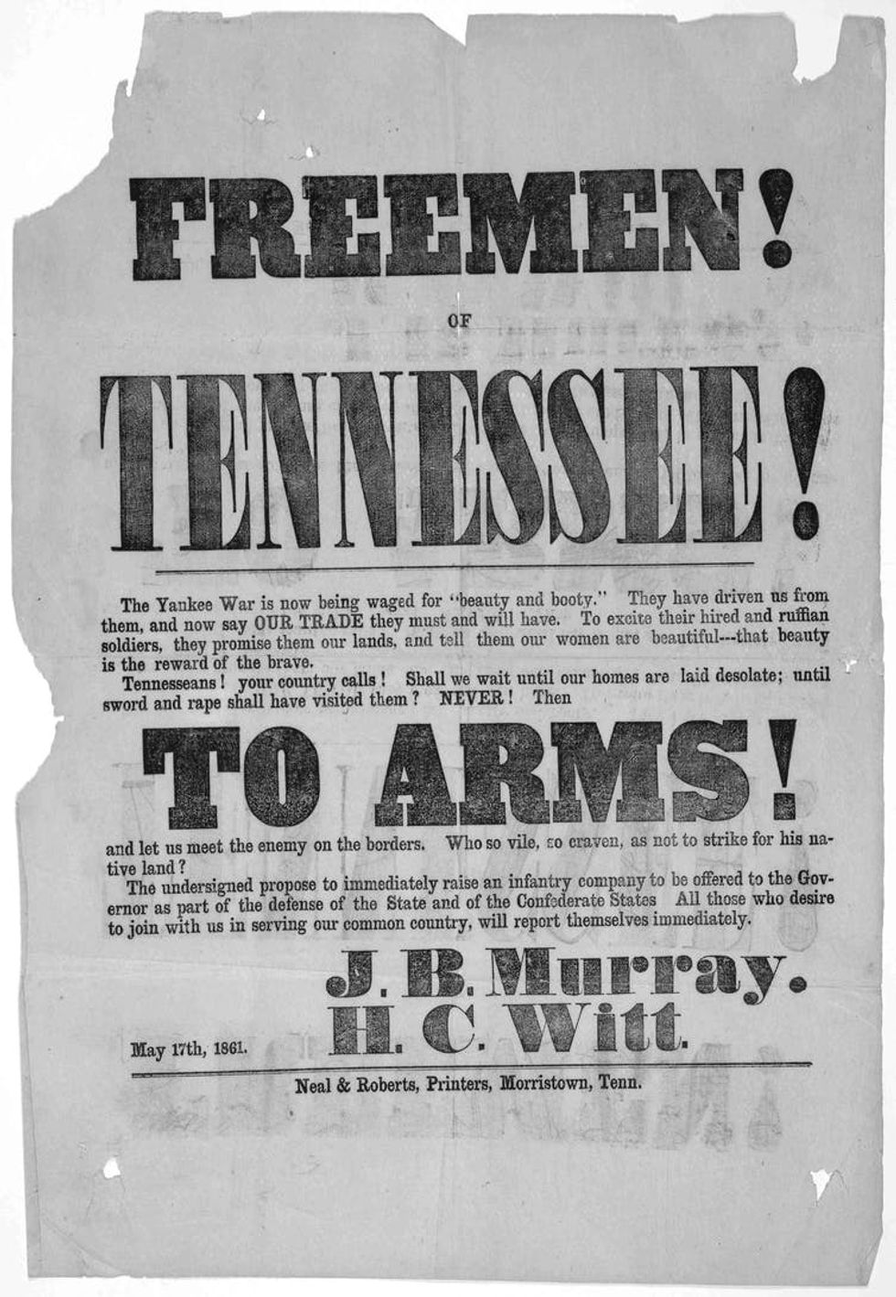 Confederate recruitment poster of 1861: ‘Let us meet the enemy on the borders. Who so vile, so craven, as not to strike for his native land?’