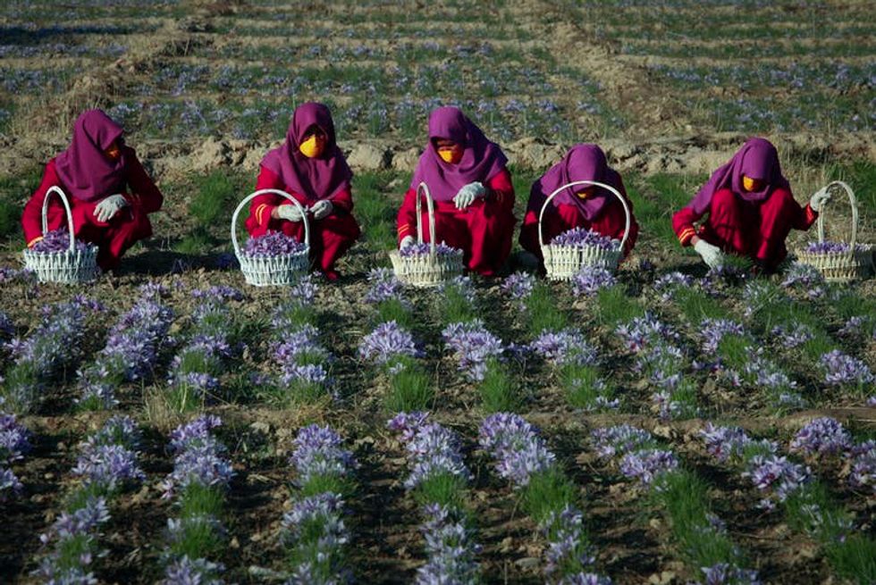 Afghan women work in a saffron field in Herat, Afghanistan, Nov. 27, 2013.