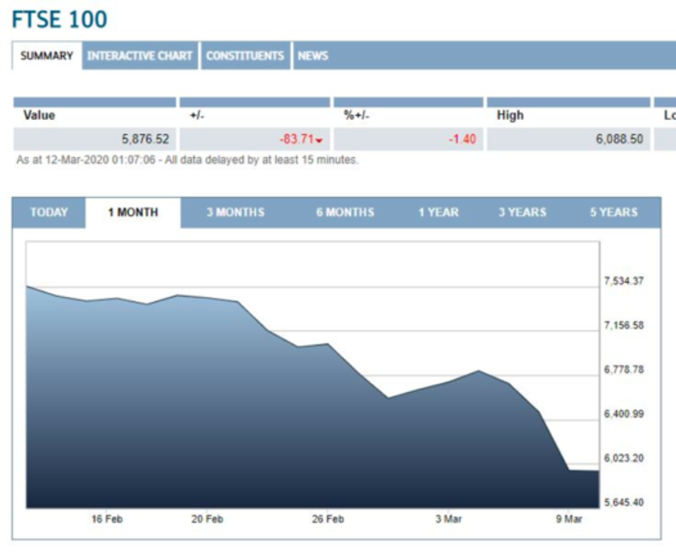 The FTSE Index, is the British stock market, crashed on March 9, and they've similarly experienced a huge loss this week.