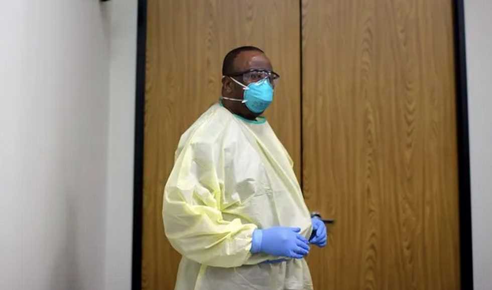 A personal protection equipment training session in Houston on March 12, 2020. Mark Felix for The Texas Tribune