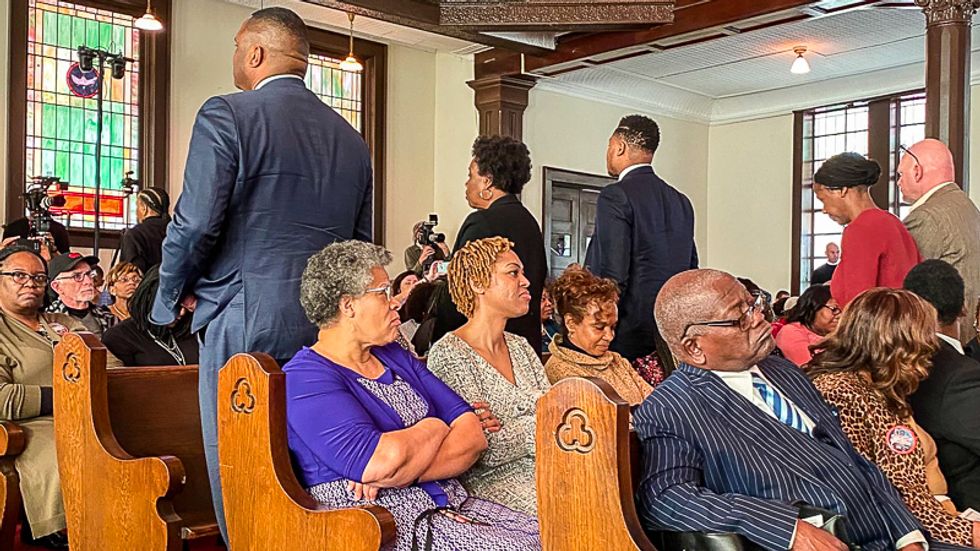 Parishioners at a historically black church in Selma, Alabama protested Democratic presidential candidate Michael Bloomberg as his spoke on Sunday.