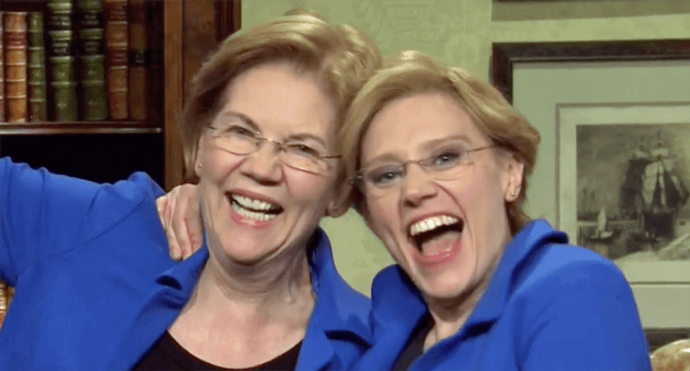 Elizabeth Warren and Kate McKinnon (screengrab)