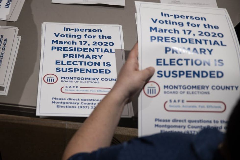 Ohio Gov. Mike DeWine, a Republican, had state health officials cancel his state’s Democratic primary in mid-March.