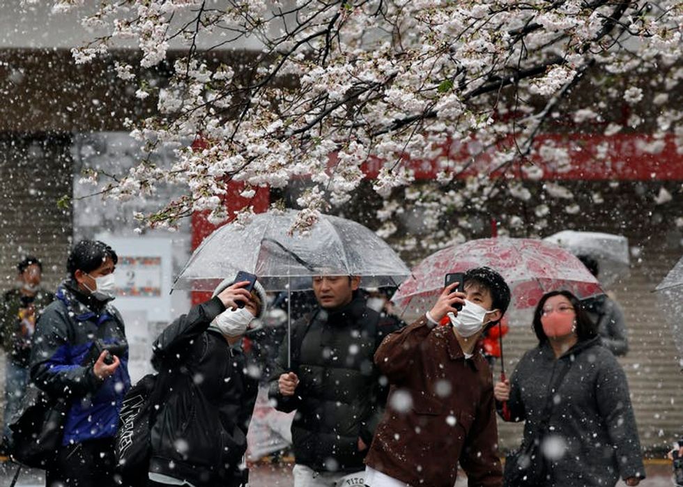 Crowds have flocked to view the cherry blossoms, despite messages to stay home.