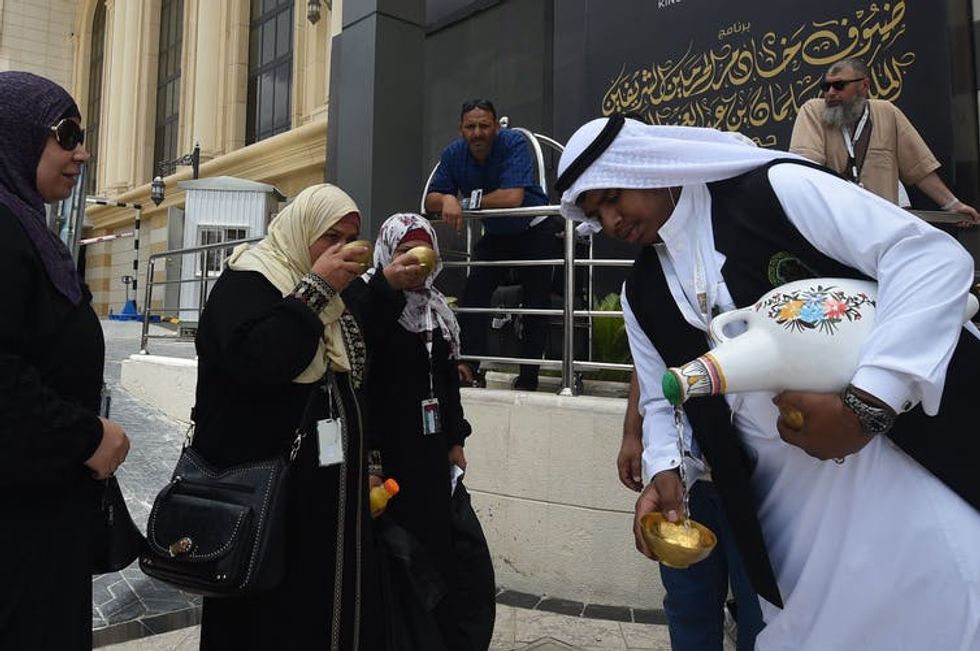 Muslim pilgrims drinking Zamzam water upon arrival in the holy city of Mecca in 2019.
