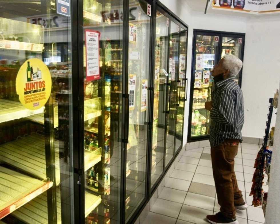 AFP / RODRIGO ARANGUA Store refrigerators, such as this one in Mexico City on May 5, are empty with beer-making deemed a non-essential activity during the coronavirus pandemicIn the town of Tijuana, on the US border, people can buy beer from websites selling it at three times its original price.