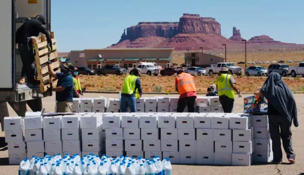 "It's taken a huge toll on our people," said Lanell Mernard-Parrish, 49, who works as a secretary-treasurer for the local chapter of the Navajo government and was volunteering to load care packages into cars.