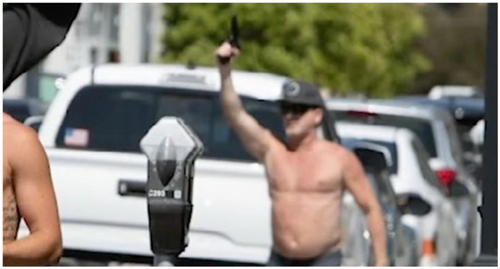 According to witnesses, a shirtless white man with a gun approached a black man and shouted "black lives don't matter." When the man confronted the suspect, the suspect pointed the gun at him and then ran away.