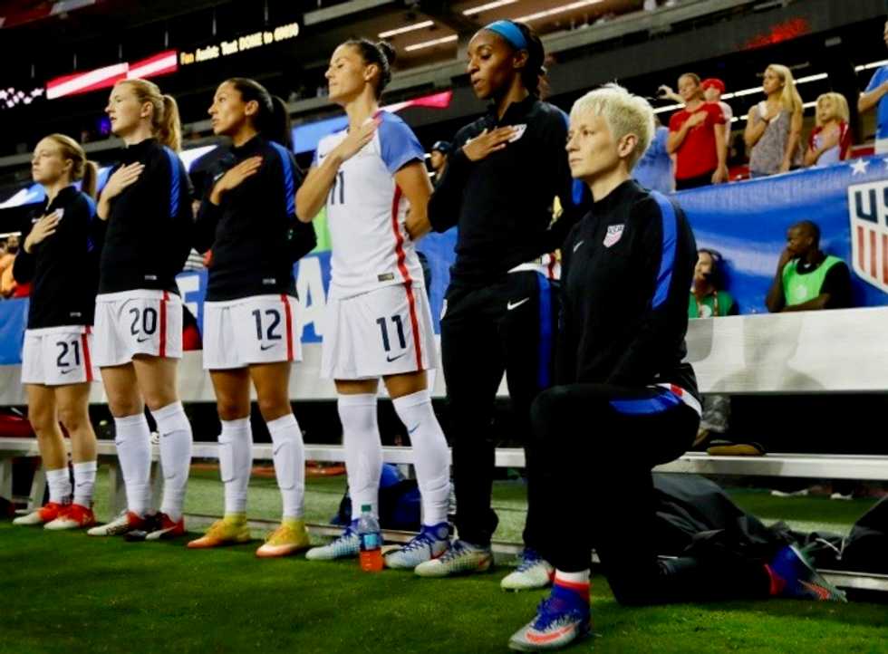 It came after US women's team star Megan Rapinoe knelt during the anthem at a 2016 international in a gesture of solidarity with former NFL star Colin Kaepernick.
