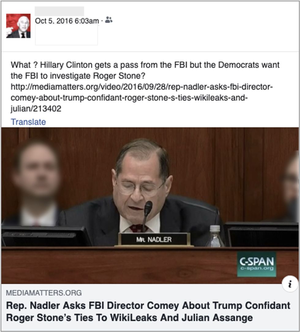 "Since then, the majority of these accounts have been dormant, and some were permanently deleted by the users," he wrote. "The Page admins and account owners posted about local politics in Florida, Roger Stone and his Pages, websites, books, and media appearances, a Florida land and water resources bill, the hacked materials released by Wikileaks ahead of the US 2016 election, candidates in the 2016 primaries and general election, and the Roger Stone trial."