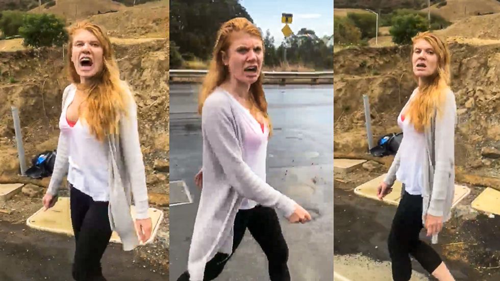 The video ends with the woman repeatedly yelling: "Nasty Mexican turd dog!"