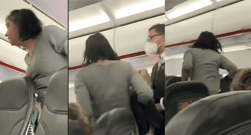"F*cking fascist!" she appeared to shout as she exited the plane door.