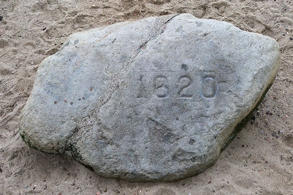 According to historian George Willison, who devoted his life to the subject, the story about the rock is all malarkey, a public relations stunt pulled off by townsfolk to attract attention. What Willison found out is that the Plymouth Rock legend rests entirely on the dubious testimony of Thomas Faunce, a ninety-five year old man, who told the story more than a century after the Mayflower landed. Unfortunately, not too many people ever heard how we came by the story of Plymouth Rock. Willison's book came out at the end of World War II and Americans had more on their minds than Pilgrims then. So we've all just gone merrily along repeating the same old story as if it's true when it's not. And anyway, the Pilgrims didn't land in Plymouth first. They first made landfall at Provincetown. Of course, the people of Plymouth stick by hoary tradition. Tour guides insist that Plymouth Rock is THE rock.