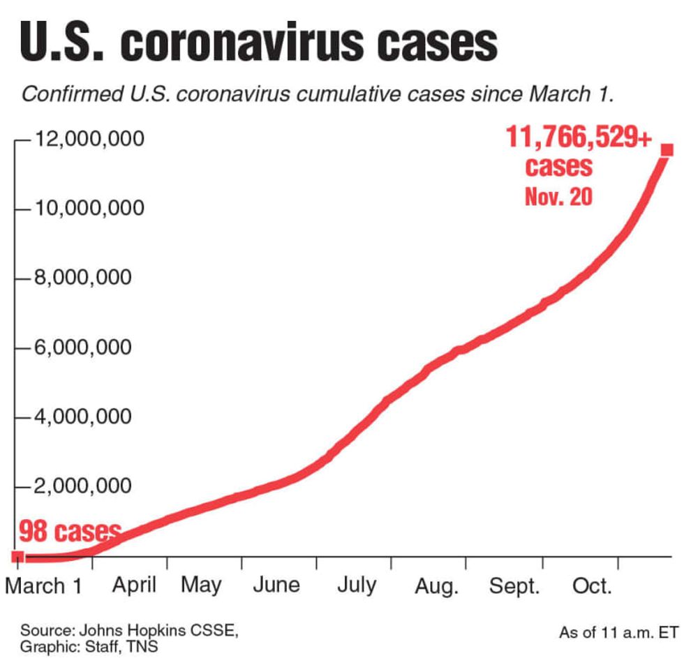 More than 12 million people in the U.S. have now been infected with coronavirus.The virus has spread rapidly in recent weeks, as the country hit 10 million cases Nov. 9 and the 11 million mark Nov. 15.More than 255,000 people in the U.S. have died from COVID-19, according to data from Johns Hopkins University.The U.S. has recorded more cases and deaths than any other country. India, home to an estimated 1.3 billion people, has tallied 9 million cases and 130,000 deaths. Brazil has reported 6 million cases and 168,000 deaths.A record 665,000 new cases were reported worldwide Friday. The U.S. wa...