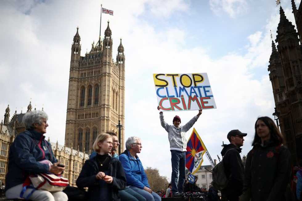 (Reuters) - Climate change campaigners gathered outside Britain's parliament building ahead of Earth Day to urge action on global warming, while volunteers worldwide geared up to plant trees and clear trash to mark the 54th annual celebration of the environment.
