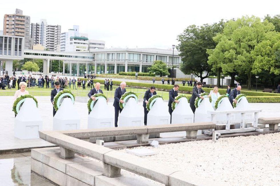 School children presented the G7 leaders with wreaths and they then solemnly placed them at a memorial park.