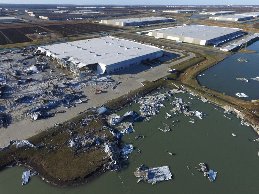 Several employees told Reuters that they had been directed to shelter in bathrooms by Amazon managers after receiving emergency alerts on mobile phones from local authorities. The first warning was issued about 40 minutes before the tornado hit, according to firefighters and the Illinois governor.