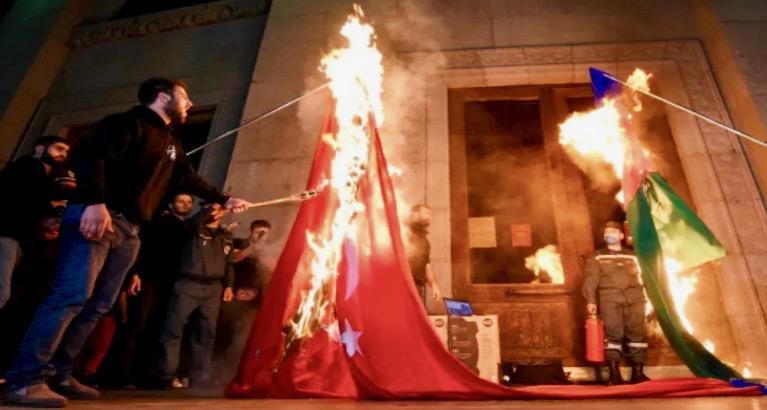 Activists of the nationalist Dashnaktsutyun party -- which led the march -- burned Turkish and Azerbaijani flags.