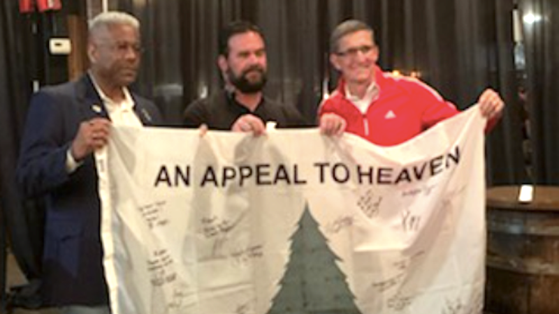 "1st Praetorian helps us; they now need our help," Flynn tweeted, tagging right-wing broadcasters Mark Levin, Rush Limbaugh, Sean Hannity and Tucker Carlson. "Consider donating to support these American Patriots."Lewis tweeted a photo of himself, Flynn and then-Texas GOP chairman Allen West at the QAnon event last month in Dallas holding a Pine Tree flag, a Revolutionary War relic that's been embraced by Christian nationalists.