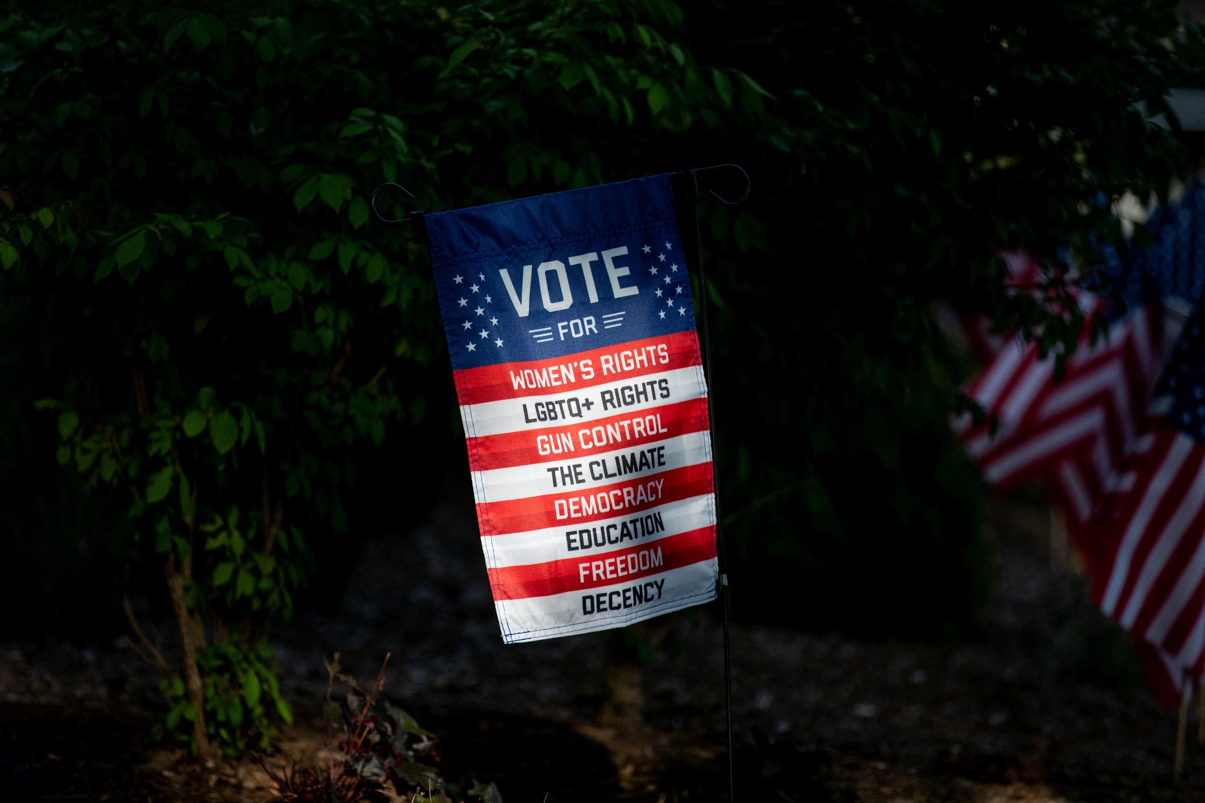A lawn sign in Berkley, Michigan, U.S. September 5, 2024. REUTERS/Emily Elconin