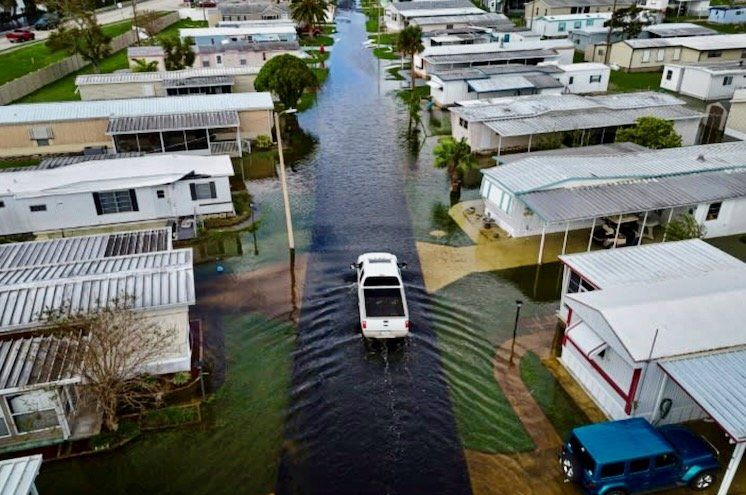 An aerial view shows a truck driving through a flooded street in the aftermath of Hurricane Milton in South Daytona, Florida (Miguel J. Rodriguez CARRILLO/AFP)