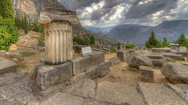 [Ancient Greek ruins at Delphi via Shutterstock]