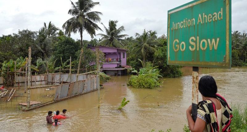 More than 30 military helicopters and 320 boats are attempting rescues across Kerala after some areas were engulfed by overflowing rivers, with residents seen swimming and wading through chest-high waters past partially submerged houses.