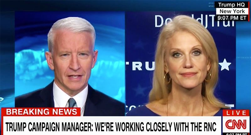 Appearing with CNN's Anderson Cooper, the campaign manager for GOP nominee Donald Trump was continually thrown off her 'run out the clock' game Tuesday night as the host continually reminded her that her candidate is way behind in the polls.