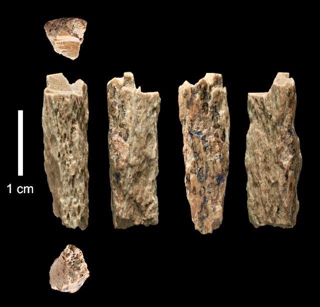 Bone fragments unearthed by Russian archeologists at the Denisova Cave in the Altai Mountains of Siberia