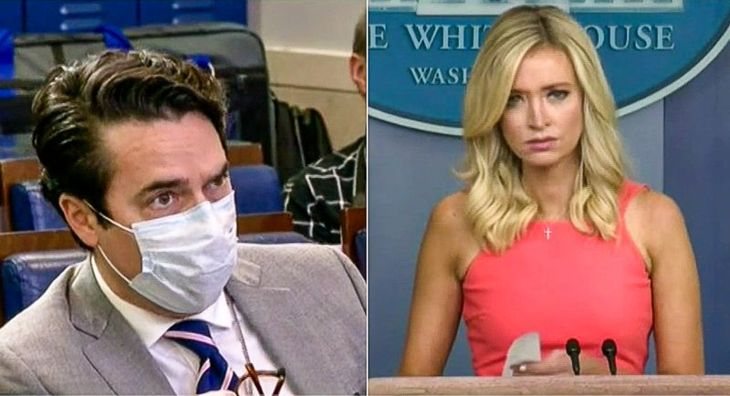 "Well, your first question is absolutely absurd," McEnany replied without providing a direct answer. "He's proud of the United States of America."