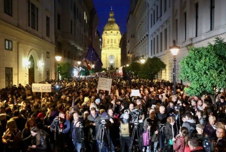 A university protest in Hungary, which had the lowest level of academic freedom in Europe, according to an annual index (AFP)