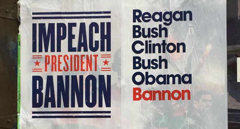 According to The Hill, signs stating, "Impeach President Bannon," followed by the timeline list: "Reagan Bush Clinton Bush Obama Bannon" have shown up in major cities across the country -- just in time for President's Day Weekend.