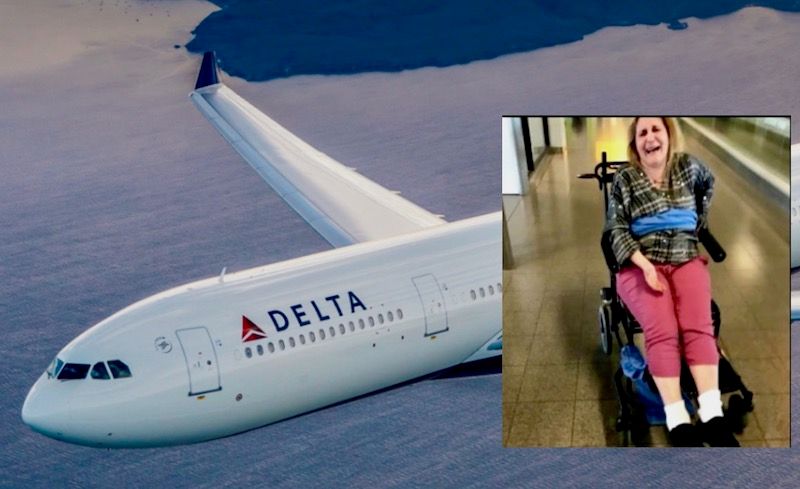 A passenger flying out of Atlanta on Delta says she was tied to a wheelchair with a dirty blanket when airline employees could not find the kind of wheelchair she needed, Atlanta's WSBTV reports.