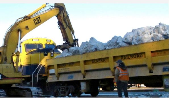 2016’s warm winter meant not enough snow for the start of the Iditarod sled dog race in Anchorage, so it was brought by train from 360 miles north. AP/Rachel D'Oro