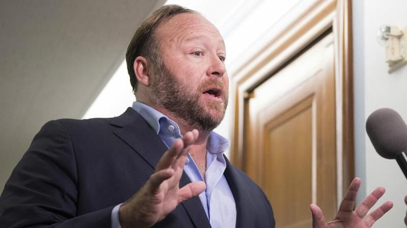 In this file photo taken on September 05, 2018 right-wing conspiracy theorist Alex Jones speaks with reporters in Washington, DC. (Jim Warson / AFP)
