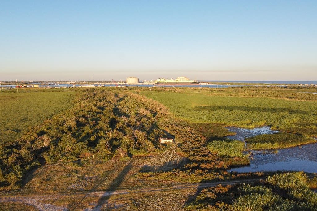 Many petrochemical facilities are already visible across the Sabine River in Port Arthur, Texas.