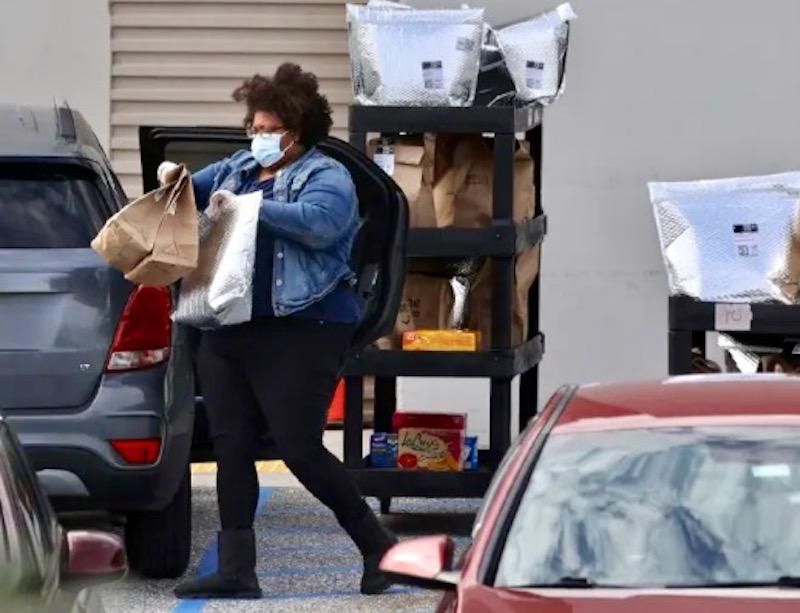 An Amazon Flex driver is seen loading packages outside an Amazon fulfillment center in Baltimore, Maryland in April 2020