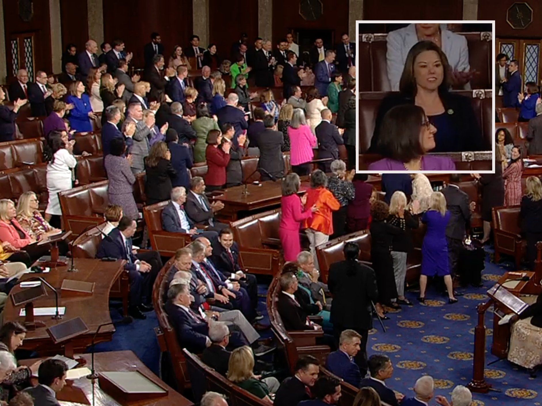 Rep. Angie Craig (D-MN) received a standing ovation Wednesday when she taunted Mike Johnson, who would soon after be elected speaker of the House and who is the man behind a federal "Don't Say Gay" bill, by sending a shout-out to her wife.