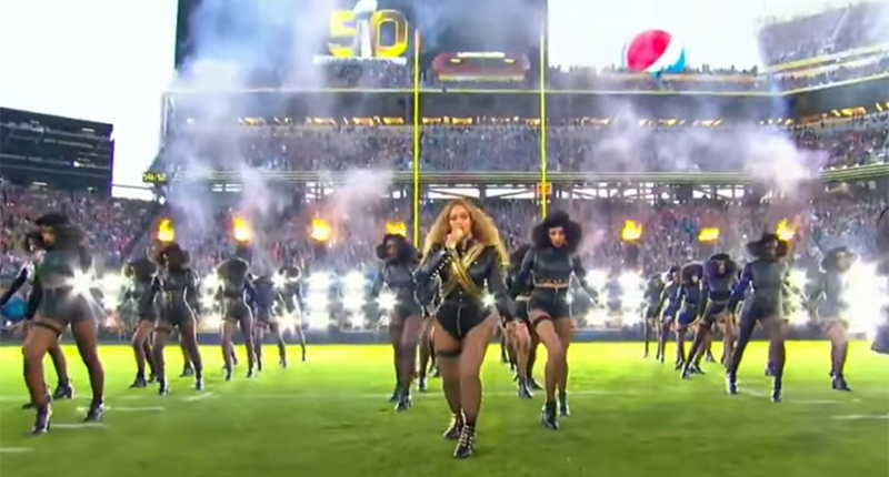 The performance, Sunday featured a chorus of African American dancers with berets that were reminiscent of the Black Panther Party which was founded 50 years prior in Oakland, just over the Bay from the Super Bowl. Before the performance, some of the dancers took a photo with fists raised, holding a sign that read "Justice for Mario Woods." Woods was a young black man with a knife who was surrounded by police and shot.