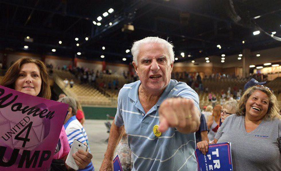 Angry Trump fans converge on the press pen at a rally in Florida on Friday, Aug. 12, 2016 (Screen capture)