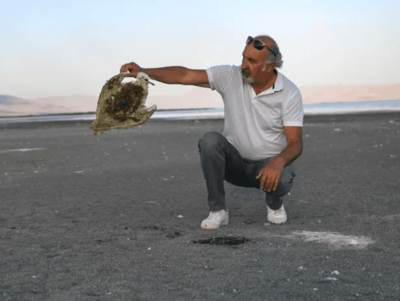 The water's loss also exposes pollution, according to Orhan Deniz, a professor of Yuzuncu Yil University, whose campus sits on the lake's shore.