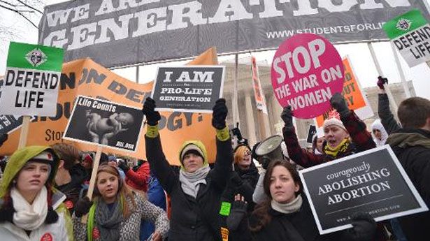 Anti-abortion activists hold placards infront of the US Supreme Court during the annual March for Life (AFP)