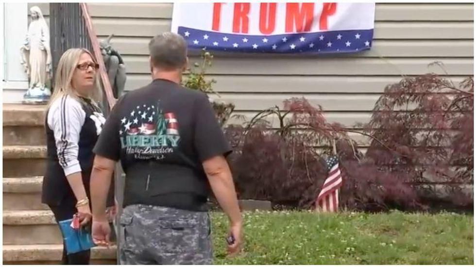 Dilascio's daughter, Andrea Dick, has covered her fence with signs that say things such as "F*ck Biden," "Socialism sucks, Biden blows" and "Don't blame me I voted for Trump."